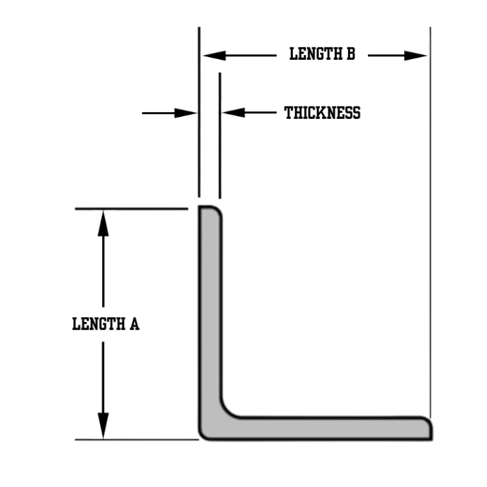 | 4 X 3 1/2 X 1/4 HR ANGLE 4 X 3 1/2 X 1/4 HR ANGLE/Asset/Angles-model.png | Length A (in) N/A 4 | Length B (in) N/A 3-1/2 | Thickness (in) N/A 1/4 | Weight Per Linear Foot (lb) N/A 6.20 | Material N/A Carbon Steel | Grade N/A A36 Grade 50 |