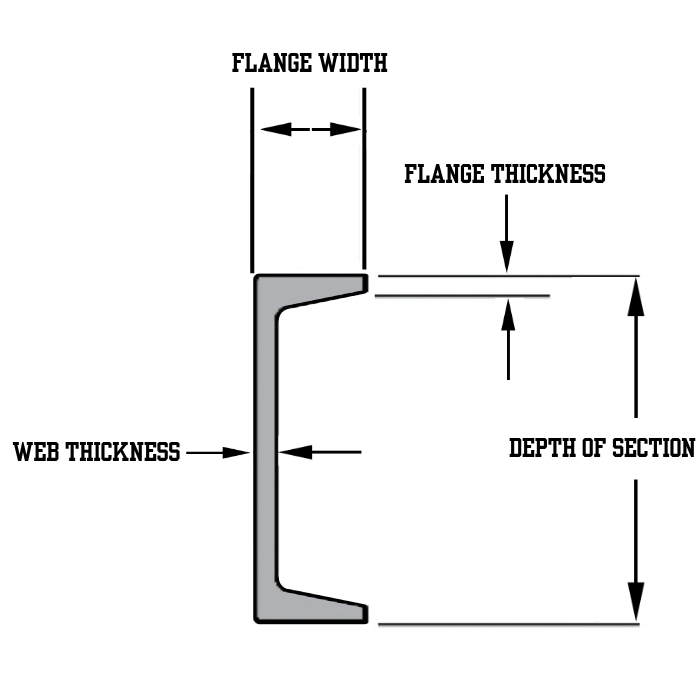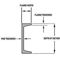 | 15 X 33.9# HR A588 CHANNEL 15 X 33.9# HR A588 CHANNEL/Asset/Channel-model.png | Depth of Section (in) N/A 15.00 | Flange Width (in) N/A 3-3/8 | Flange Thickness (in) N/A 5/8 | Web Thickness (in) N/A 3/8 | Weight Per Linear Foot (lb) N/A 33.90 | Grade N/A A588 |