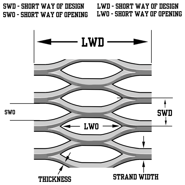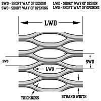 | 4.00# HRPO EXPANDED GRATING (STANDARD/RAISED) 4.00# HRPO EXPANDED GRATING (STANDARD/RAISED)/Asset/HRPO-Expanded-Grating-Model.png | Short Way of Diamond (SWD) (in) N/A 1.33 | Long Way of Diamond (LWD) (in) N/A 5.33 | Short Way of Opening (SWO) (in) N/A 0.94 | Long Way of Opening (LWO) (in) N/A 3.44 | Strand Thickness (in) N/A 0.215 | Strand Width (in) N/A 0.300 | Weight Per Square Foot (lb) N/A 4.00 | Material N/A Carbon Steel | Finish N/A Hot Rolled Pickled and Oiled (HRPO) | Grade N/A A1011 |