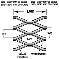 | 3/4 X 13 GA RAISED EXPANDED METAL 3/4 X 13 GA RAISED EXPANDED METAL/Asset/Raised-Expanded-Metal-Model.png | Short Way of Diamond (SWD) (in) N/A 0.923 | Long Way of Diamond (LWD) (in) N/A 2.000 | Short Way of Opening (SWO) (in) N/A 0.760 | Long Way of Opening (LWO) (in) N/A 1.688 | Strand Thickness (in) N/A 0.090 | Strand Width (in) N/A 0.096 | Weight Per Square Foot (lb) N/A 0.806 | Material N/A Carbon Steel | Finish N/A Bare Galvanized | Grade N/A A1011 |
